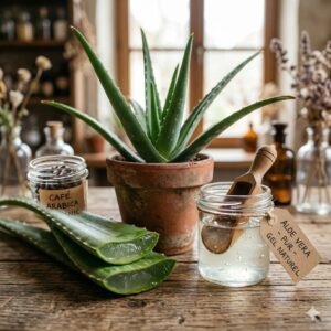 Aloe Vera pur : hydrate intensement et apaise les peaux sensibles.